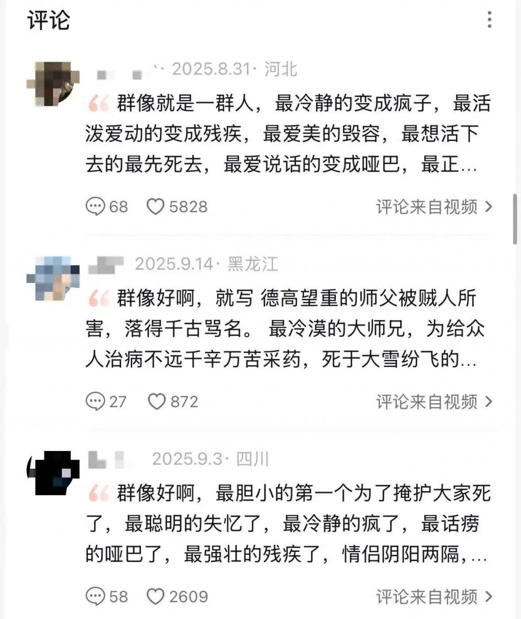 大概是年底让人多愁善感,网友们纷纷翻开了社交账簿:“朋友这一页,应是兰芝同芳、管鲍同契”,“家人这一页,应是椿萱并茂、棠棣同馨”,再到恋人、夫妻、亲戚……各种关系被围裹上精美修辞,与之搭配的视频则往往是“人山人海”。